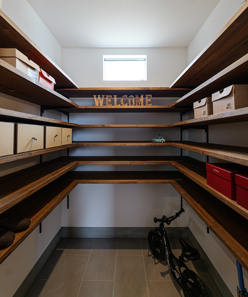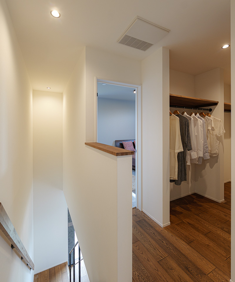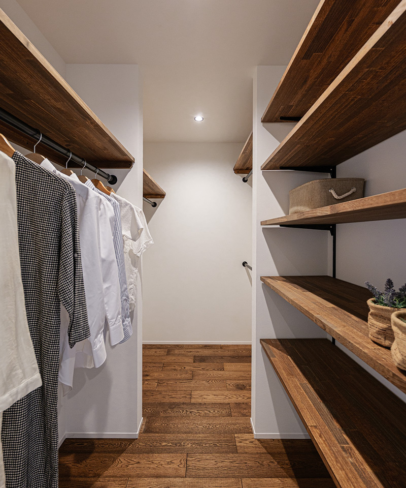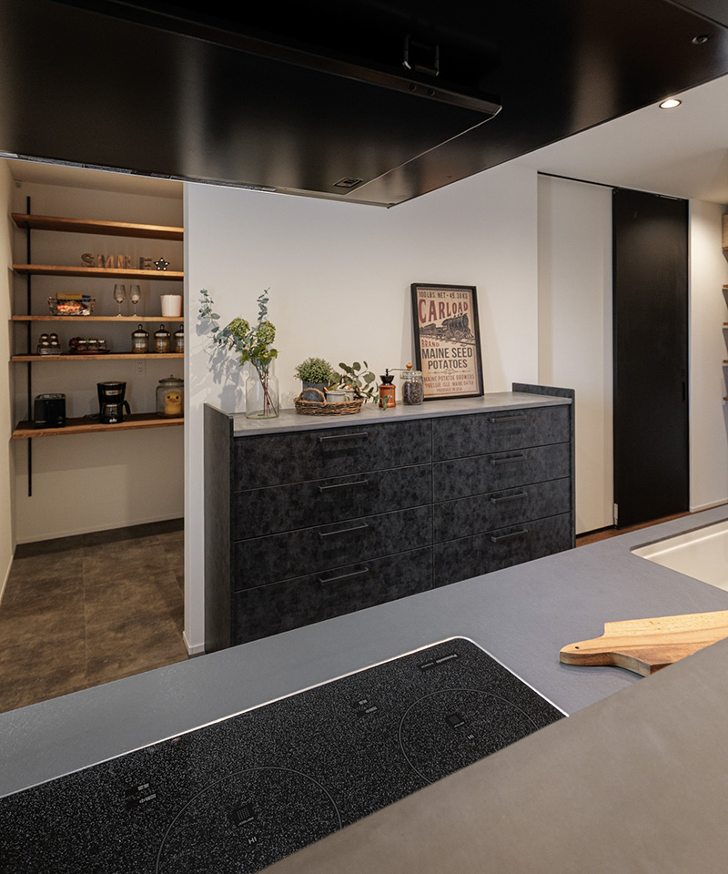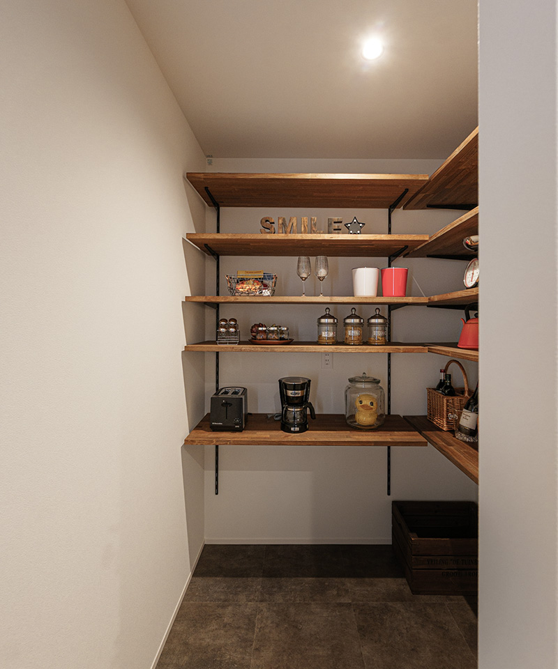 キッチン周りに集約された家事動線と、パントリーや各階に設けたファミリークローゼット。