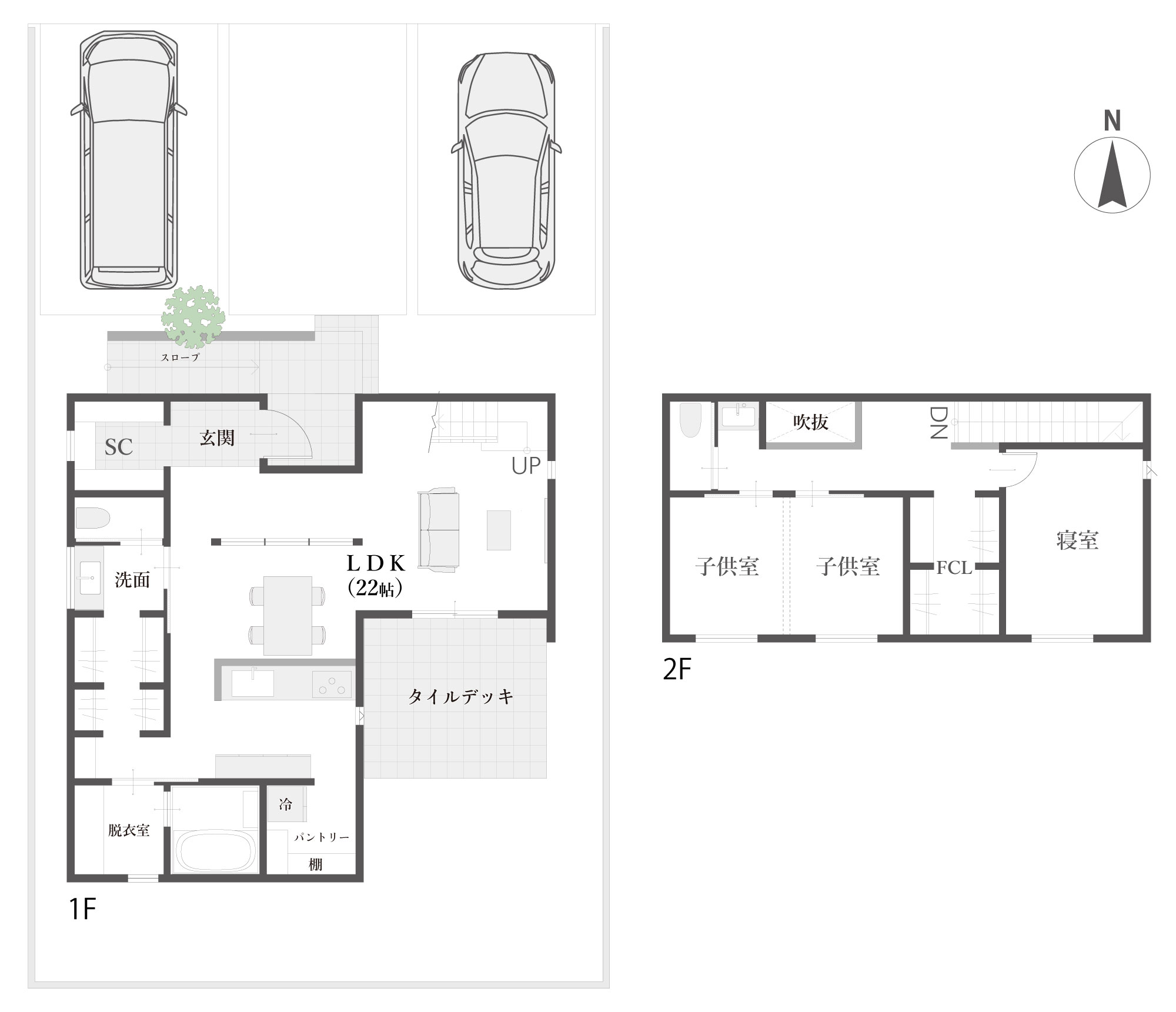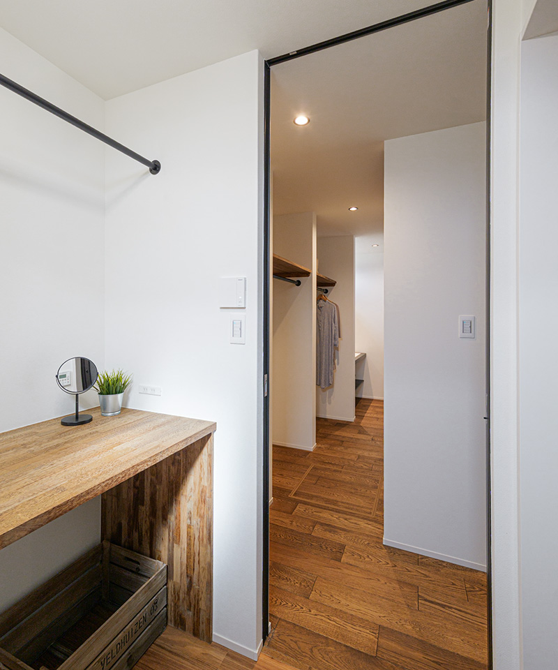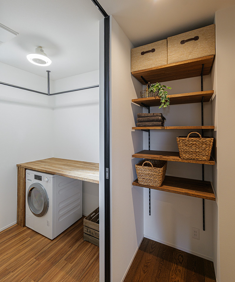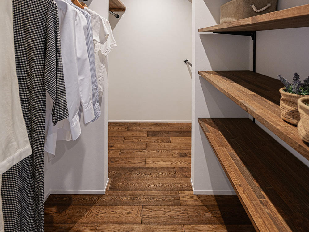 キッチン周りに集約された家事動線と、パントリーや各階に設けたファミリークローゼット。